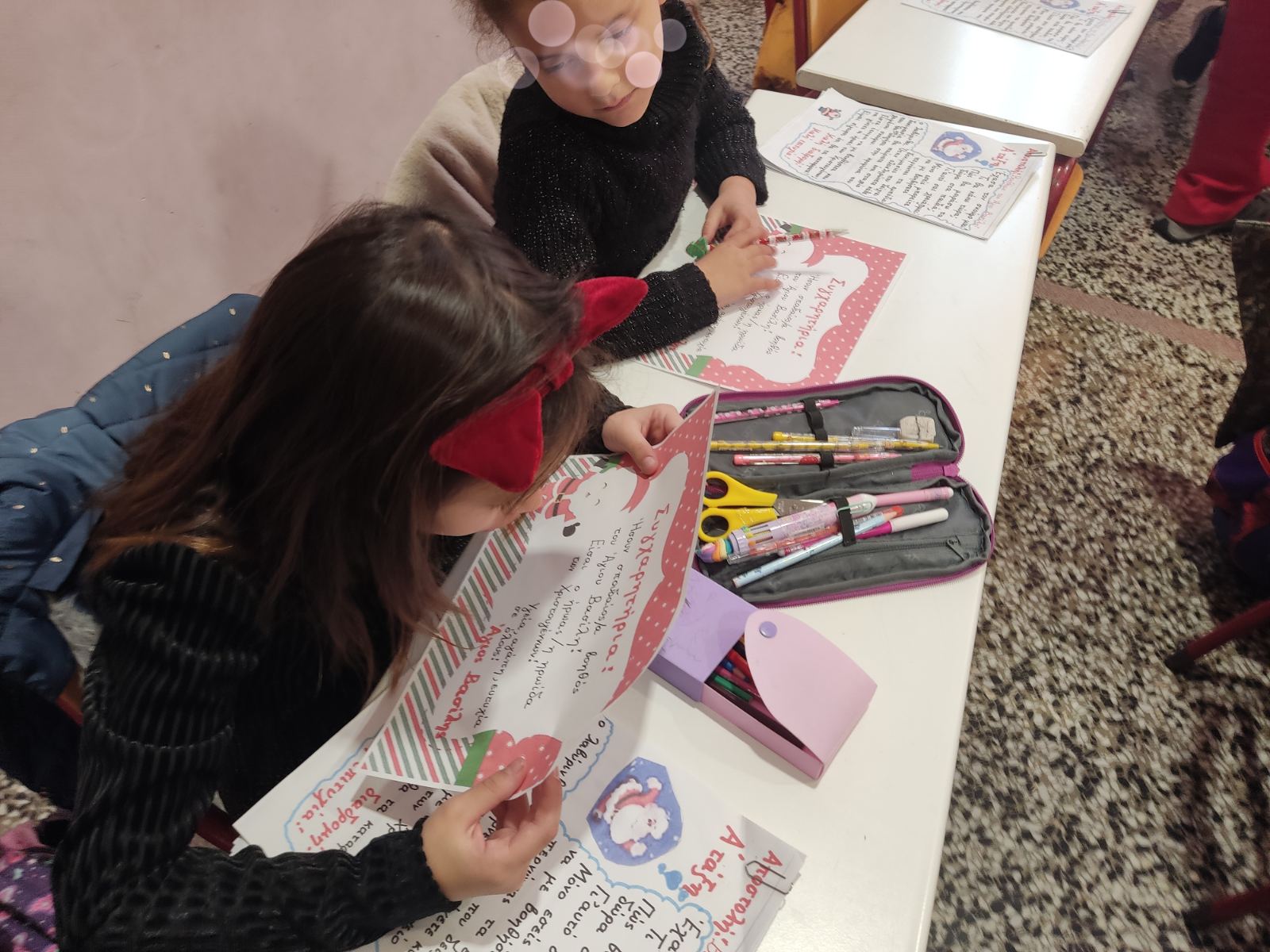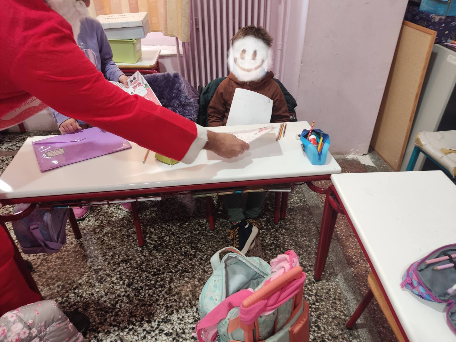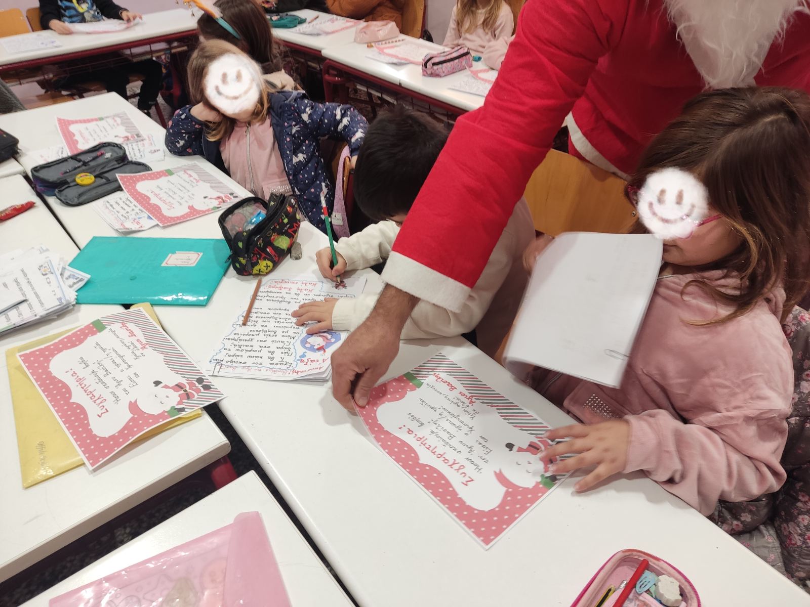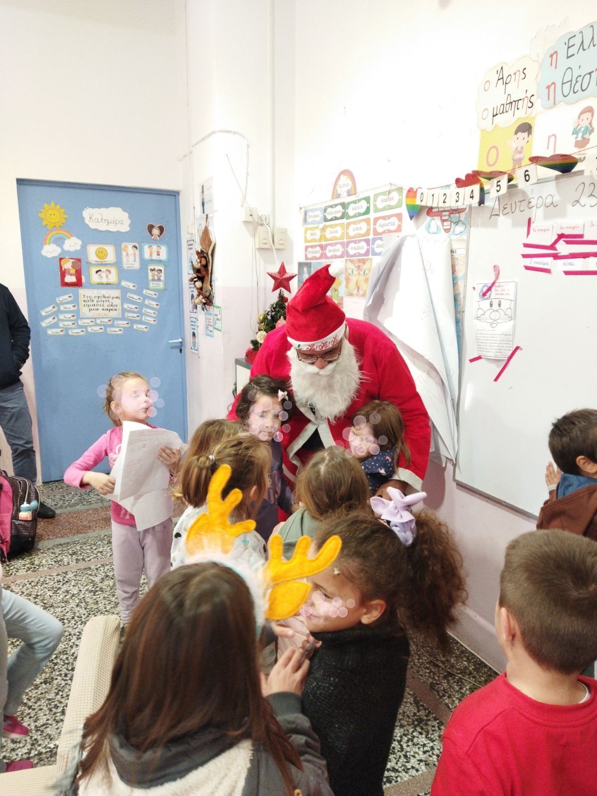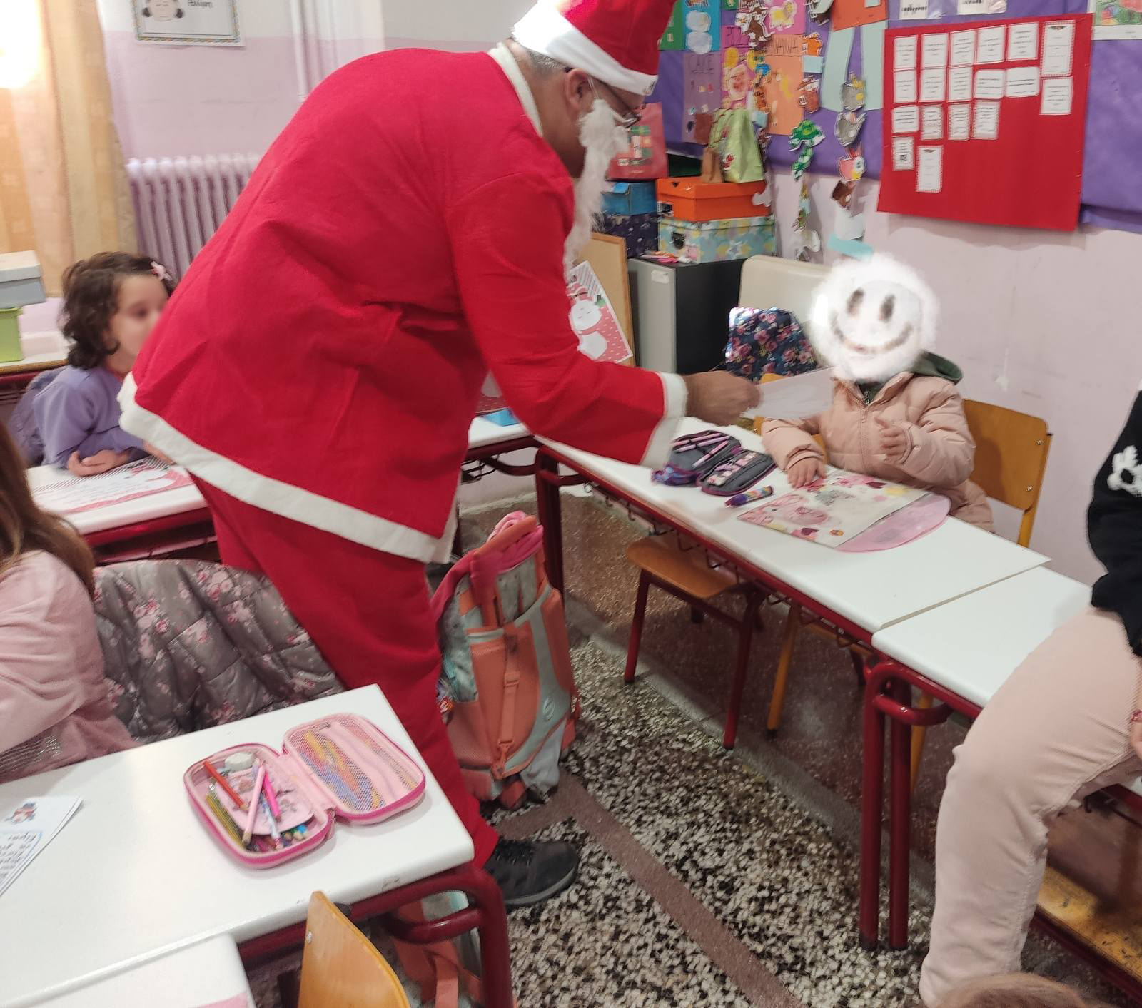 Με τον σκούφο να τον ζεσταίνει ο Άγιος χαρούμενος συνέχισε την περιήγησή του στις υπόλοιπες τάξεις του σχολείου μας, μοιράζοντας χαμόγελα και αγκαλιές σε όλους τους μαθητές!!!